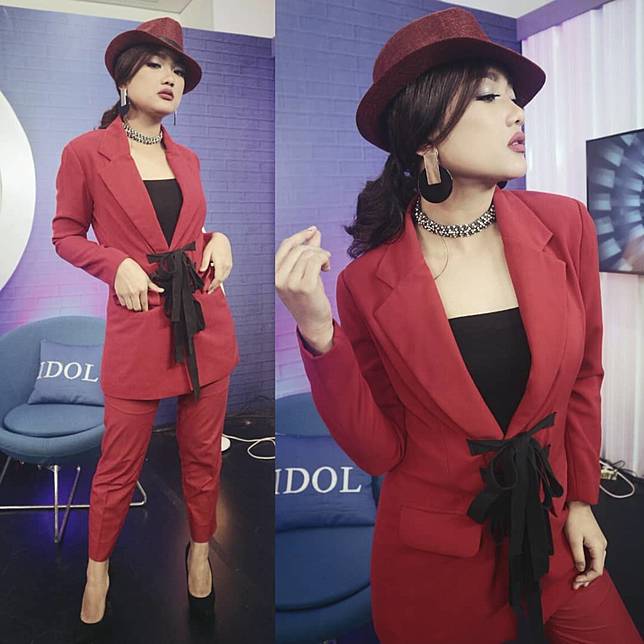10. Sama-sama memakai warna merah. Marion dan Maria terlihat seksi dengan outfit berwarna berani