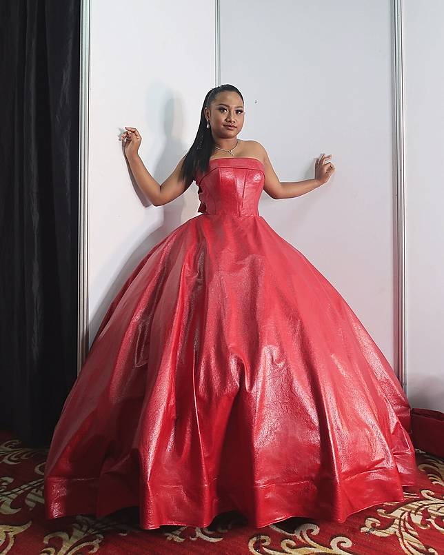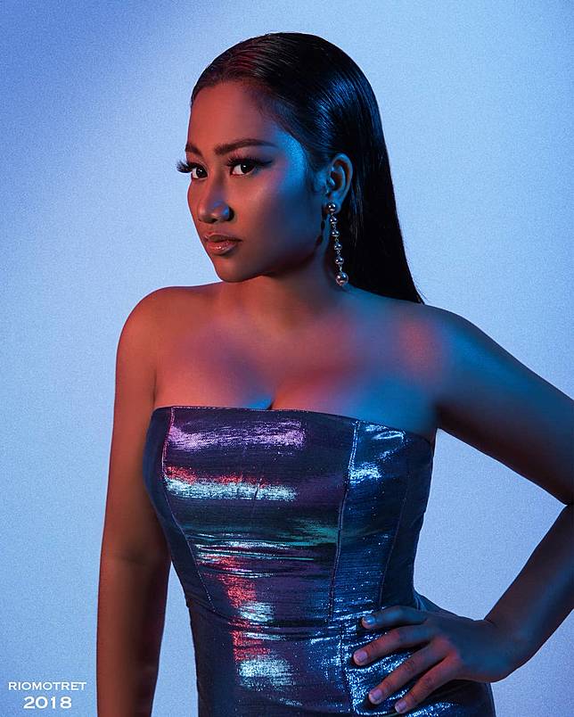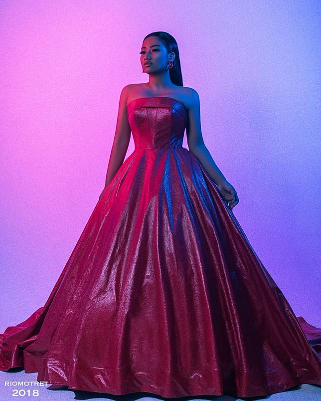 1. Dengan gaun merah yang elegan, Maria tampil eksotis seperti artis dunia dengan polesan MUA ternama Bubah Alfian
